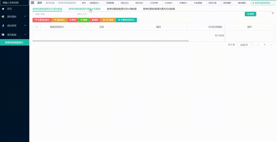 根据清洗的模型进行了实体化操作,可以通过批量导入数据或通过采集器将数据灌输至该实体模型中,对其进行可循环的清洗公司。